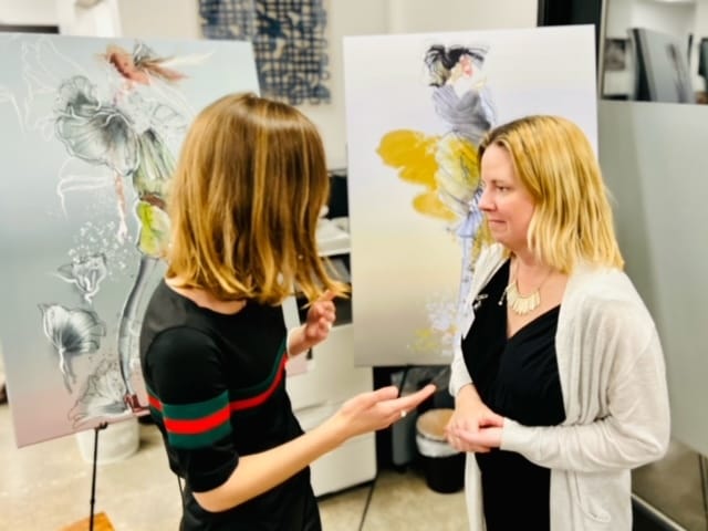 ThreeSpaces Founder, Debra Nipp (right) discussing NFT and Art